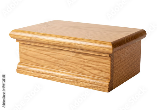 A light oak wooden box with detailed, decorative molding displays a smooth surface and classic design.