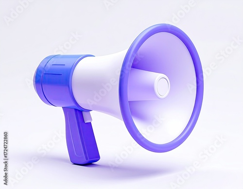 A light purple and white megaphone, digitally rendered, sits angled on a white background, showcasing its smooth curves and simple design