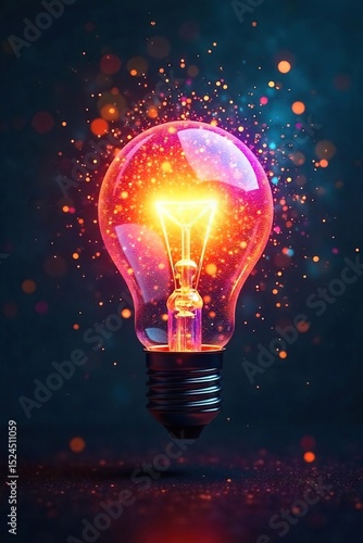 A lightbulb bursts with vibrant, multicolored light rays, illuminating a dark background Symbolising innovative thinking and creative breakthroughs , glowing, thinking outside the box, illumination