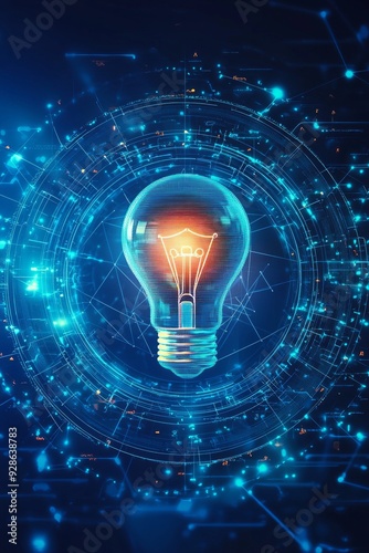 A lightbulb icon surrounded by circular frame on a blue digital background , concept of innovative technology