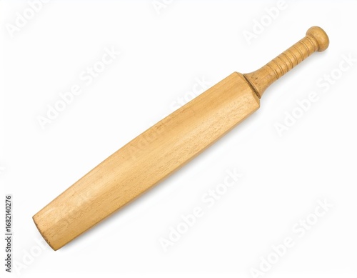 A light-colored wooden cricket bat, smooth, unblemished, and ready for play.