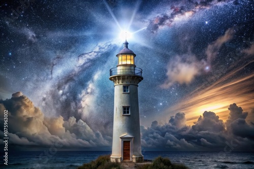 a lighthouse is lit up by a storm cloud and a storm cloud