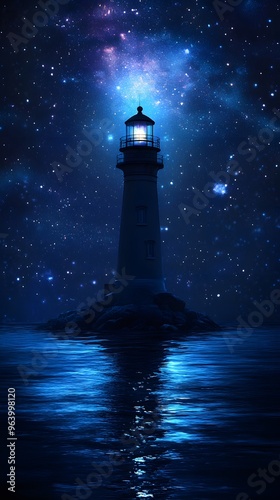 A Lighthouse Standing Tall Against a Starry Night Sky Over a Calm Sea