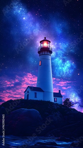 A Lighthouse Standing Tall Under a Starry Night Sky