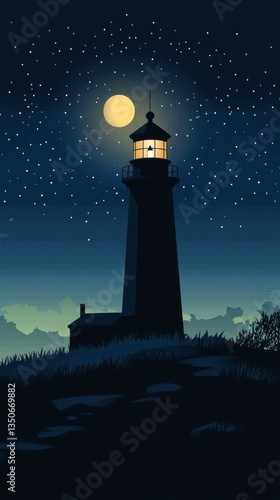 A lighthouse under the stars shining brightly in the night