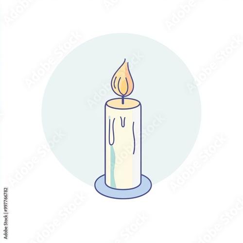 A line drawing of a candle stands against a white background, featuring soft pastel colors. candle flickers gently, exuding a tranquil ambiance for relaxation
