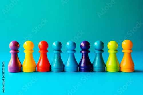 A lineup of colorful toy figures arranged to symbolize unity and diversity, set against a cheerful backdrop, showcasing vibrant hues and playful energy