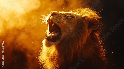 A lion roaring under a glowing spotlight in a festive New Year performance