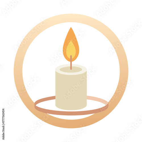 A lit candle with a warm flame inside a circular frame isolated on transparent background