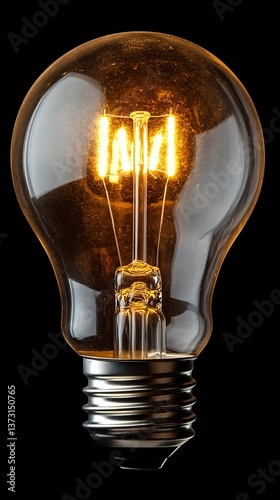 A lit incandescent lightbulb glows brightly in the dark background