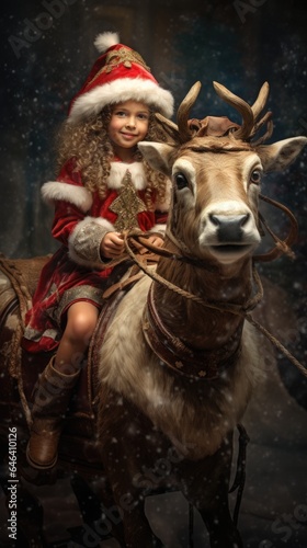 A little girl riding on the back of a deer