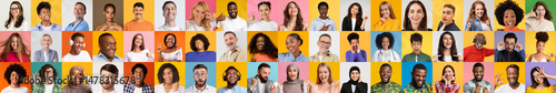 A lively collage features a diverse group of individuals showcasing their joy and unique expressions against vibrant backgrounds. Each face represents different cultures and experiences.