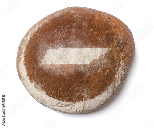 A loaf of fresh bread covered with rye flour in the shape of Ten