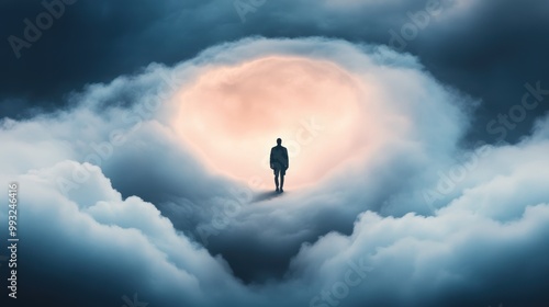 A lone figure, silhouetted against a backdrop of swirling steam and ethereal light, evokes a sense of mystery and the vastness of the human imagination.