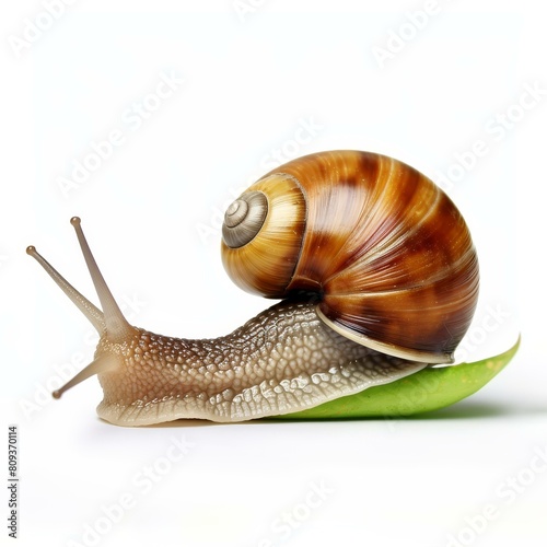 A lone garden snail crawls gracefully on a pristine white background, Ai Generated