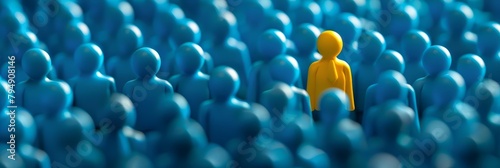 A lone yellow figure surrounded by a group of blue figures, depicting the challenge of identifying the right person in business strategy