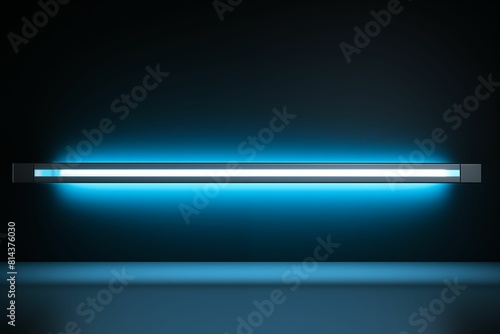 A long horizontal glowing blue light bar on a dark background in a minimalist style. Generative ai