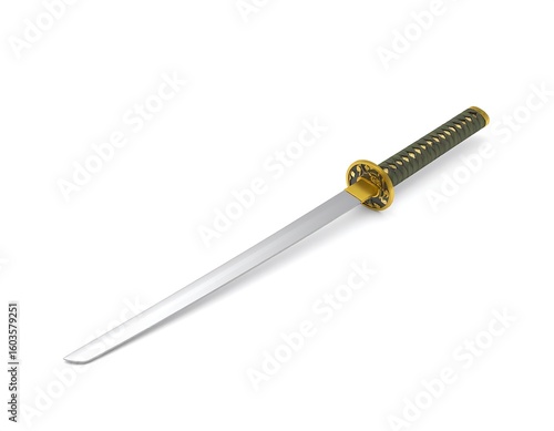 A long, light-gray katana