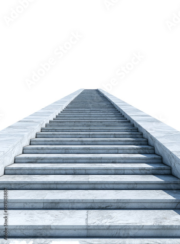 A long, wide stairway of light gray stone ascends towards a vanishing point