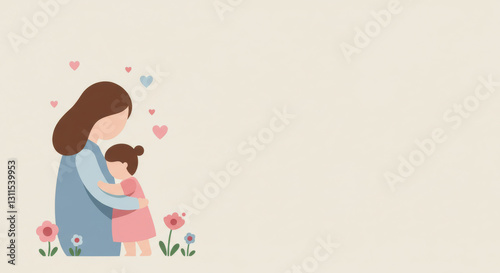 A loving mother lovingly embraces her young child happily