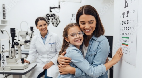 A Loving Mother's Embrace for Her Happy Daughter in New Eyeglasses