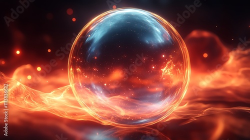 A luminous glass bubble with faint particle effects and subtle radial light flares emanating from the center