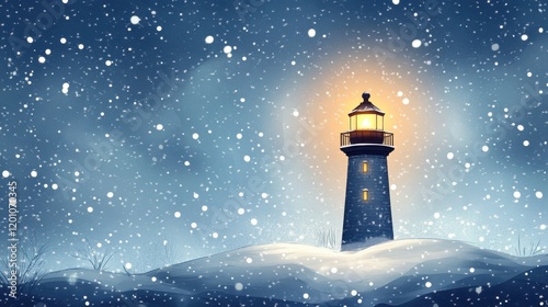 A Luminous Lighthouse Stands in Winter Snow