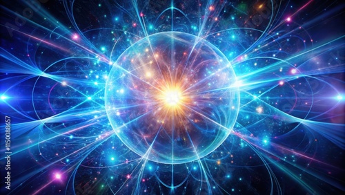 A luminous orb in the center of a celestial dance, radiating energy and light into the surrounding cosmic web.