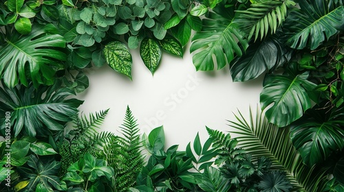 A lush arrangement of green leaves framing a blank space for text or visuals.