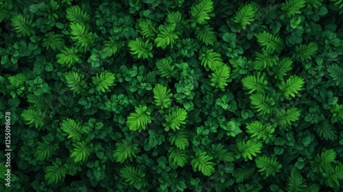 A lush green canopy of ferns and leaves, creating a vibrant texture that reflects nature's beauty from an aerial perspective.