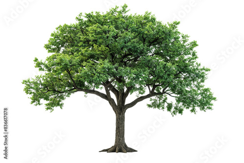 A lush green tree with dense foliage and a strong trunk, isolated on a white background, showcasing nature's beauty and life.