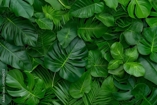 A Lush, Tropical Leaf Background With a Variety of Large Green Leaves, Perfect for Eco-friendly or Summer Themes, High Resolution Wallpaper or Background
