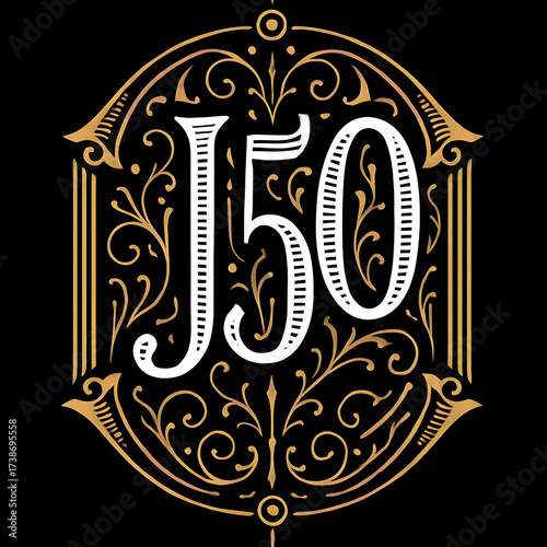 A luxurious and ornate monogram logo featuring "J50" in bold white lettering, framed with intricate golden flourishes and a shield-like border. This vintage-inspired emblem conveys prestige