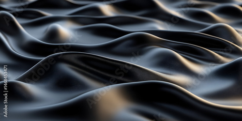 A luxurious close-up of black silk satin fabric with deep creases, its smooth texture capturing subtle highlights and shadows