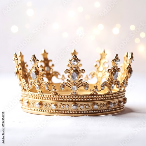 A luxurious gold crown adorned with sparkling diamonds, featuring intricate designs and a polished finish, exuding elegance and royal charm.