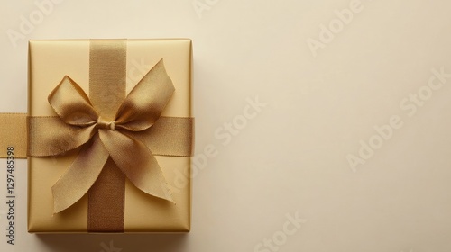 A luxurious gold gift box with a gold satin ribbon, isolated on a blank white background, perfect for showcasing high-end presents or exclusive packaging.