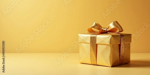 A Luxurious Gold Gift Box with a Sparkling Ribbon, Ready for a Special Occasion
