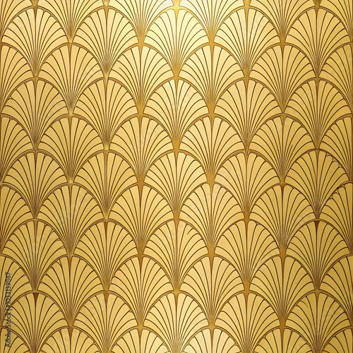 A luxurious golden wallpaper with an Art Deco-inspired pattern.