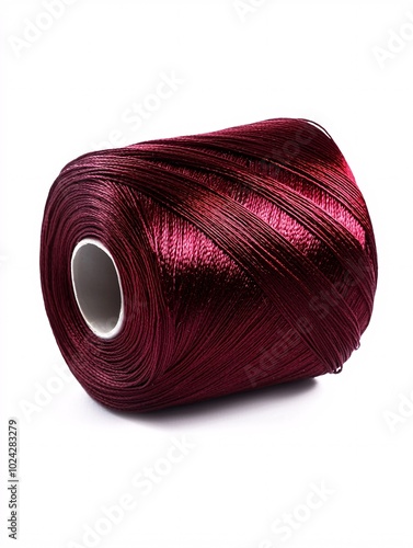 A luxurious silk thread in a deep shade gracefully spirals against a pristine backdrop, highlighting its exquisite sheen and artistry.