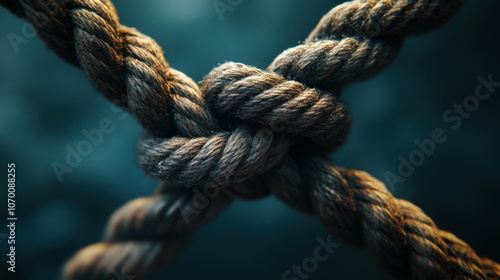 A macro photograph of the rope's knot, focusing on the intricacies and strength, with the surrounding area softly blurred.