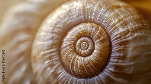A macro shot of a snail's shell, focusing on the intricate spiral pattern and the play of light and shadow.