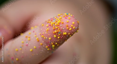 A Macro Shot of Colorful Sprinkles on a Fingertip