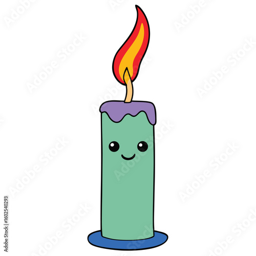 A magical single candle with a vibrant rainbow flame, isolated on white, symbolizing wishes, celebration, and uniqueness.