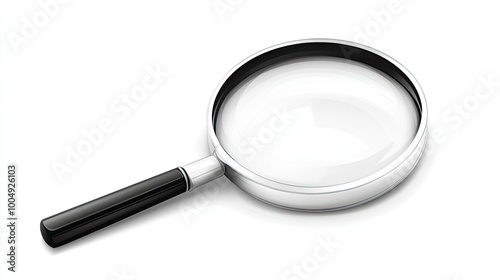 A magnifying glass with a black handle and a silver frame, isolated on a white background.