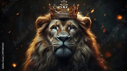 A majestic lion with crown on head, symbolizing strength and ruler of the jungle, king concept art