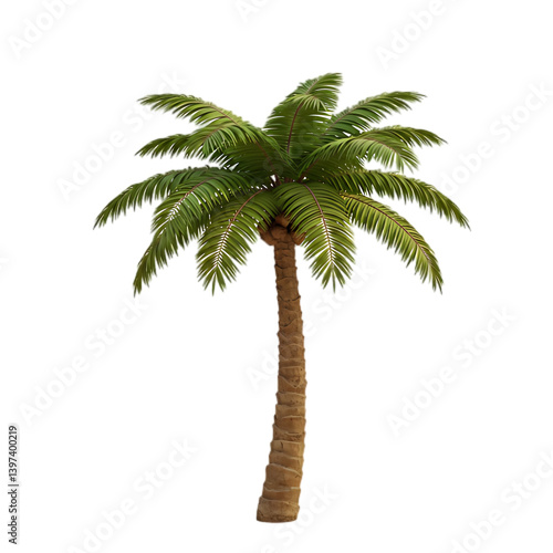 A majestic palm tree, standing tall against a pristine white background, evokes a sense of tropical paradise and tranquil escape.