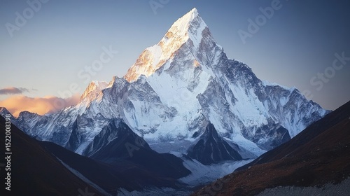 A Majestic Snow Covered Mountain Peak Under a Blue Sky