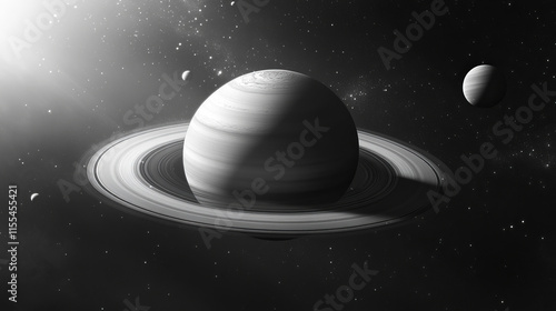 A Majestic View of Saturn: Stunning Details of Its Rings and Monochrome Beauty
