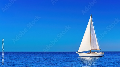 A majestic white sailboat gracefully gliding across the calm tranquil ocean waters under a backdrop of striking blue skies capturing the essence of freedom leisure and the beauty of nature