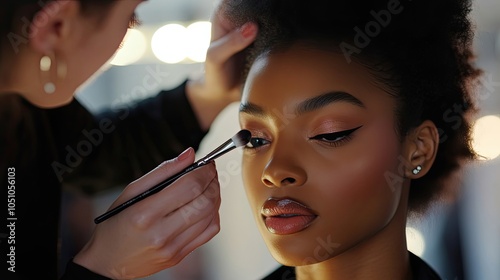 A Makeup Artist Applying Eyeshadow to a Woman's Eye